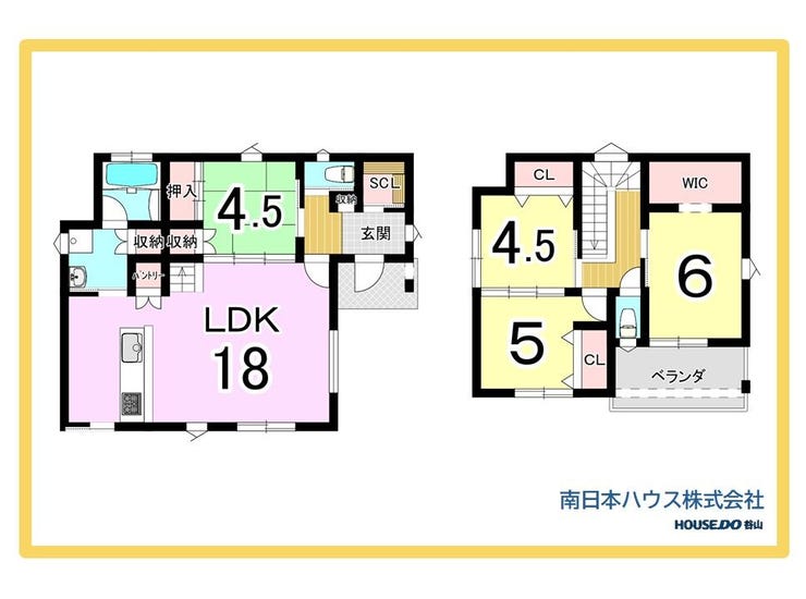 18帖LDKにパントリー、SC、WICを備えた収納充実の4LDKです。